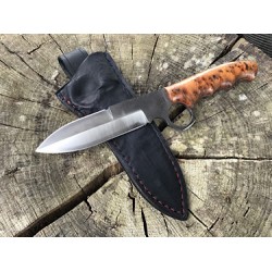 Couteau tactique ou chasse, lame dague, en acier inox 14c28, émoutures creuses et finition satinée