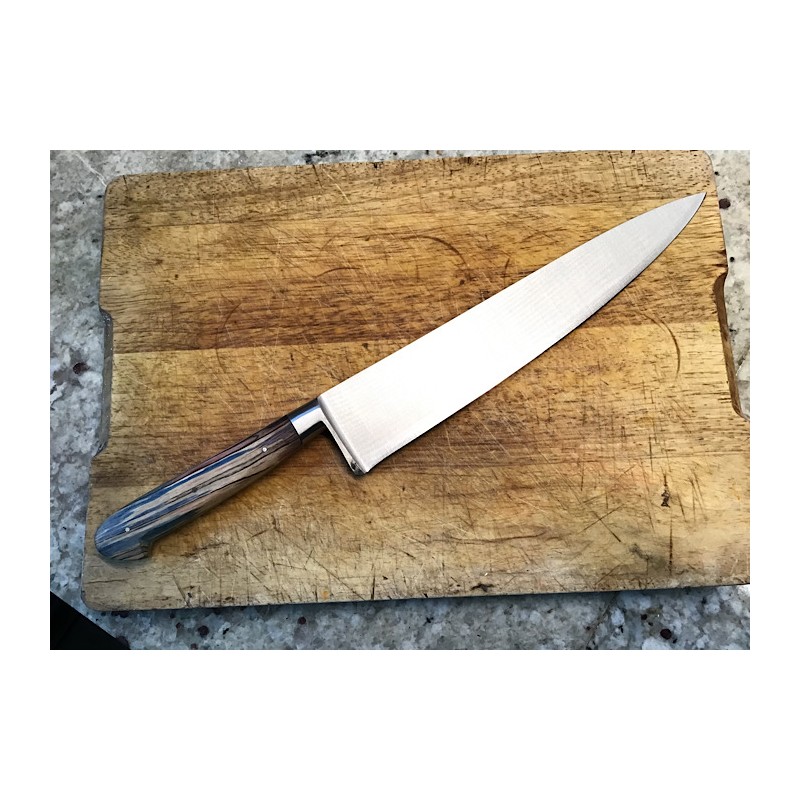Grand couteau de chef en acier inox 14C28, manche en bouleau échauffé stabilisé et teinté