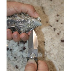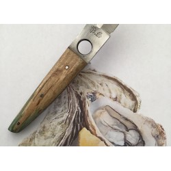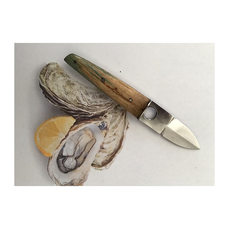 Couteau à huitre et coquilles saint Jacques en inox T7MO avec protection de doigt en inox Z20 épaisse et solide, offrant confort et plusieurs types de prises en main selon préférence de chacun et en empêchant les doigts de glisser sur le manche.